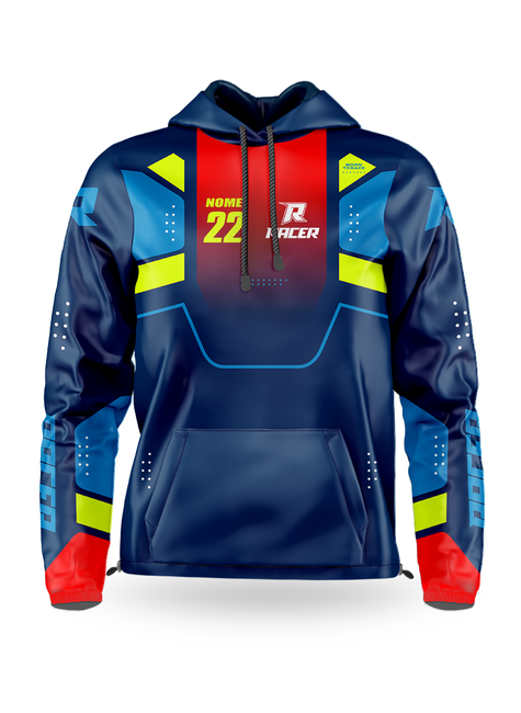 O agasalho é fabricado com tecido chimpa com peluciado interno, capuz com tecido peluciado interno microsoft, que garante o conforto e pro ajuste do capuz tem cordão e ponteira. Perfeito para dias mais frescos sem deixar de mostrar sua identidade de piloto. Ótimo para te acompanhar nos eventos off road. Com grafismos sublimados, o agasalho possibilita que a durabilidade de uso seja elevada, mesmo após o uso intenso e após várias lavagens.