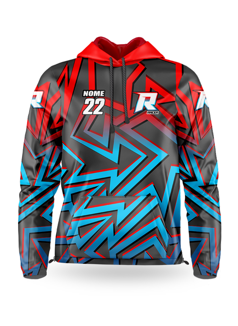 O agasalho é fabricado com tecido chimpa com peluciado interno, capuz com tecido peluciado interno microsoft, que garante o conforto e pro ajuste do capuz tem cordão e ponteira. Perfeito para dias mais frescos sem deixar de mostrar sua identidade de piloto. Ótimo para te acompanhar nos eventos off road. Com grafismos sublimados, o agasalho possibilita que a durabilidade de uso seja elevada, mesmo após o uso intenso e após várias lavagens.