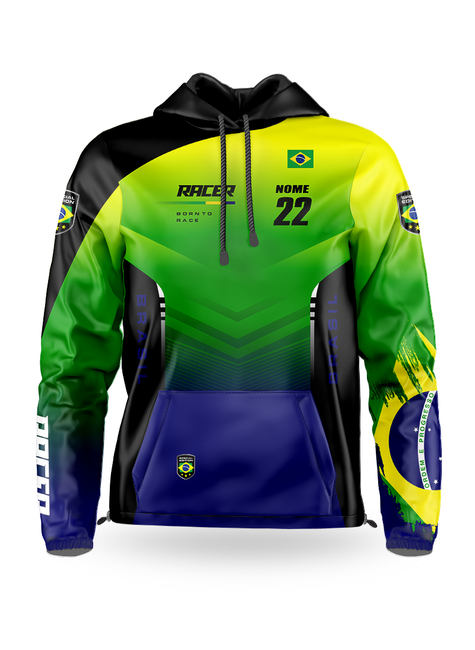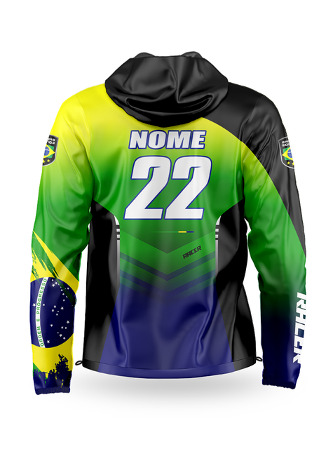O agasalho é fabricado com tecido chimpa com peluciado interno, capuz com tecido peluciado interno microsoft, que garante o conforto e pro ajuste do capuz tem cordão e ponteira. Perfeito para dias mais frescos sem deixar de mostrar sua identidade de piloto. Ótimo para te acompanhar nos eventos off road. Com grafismos sublimados, o agasalho possibilita que a durabilidade de uso seja elevada, mesmo após o uso intenso e após várias lavagens.
