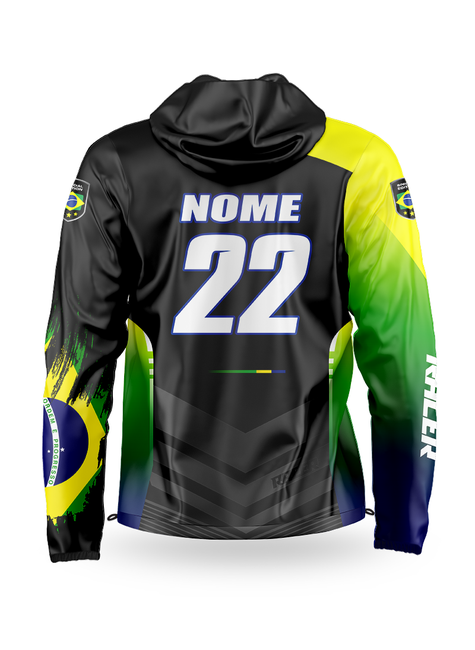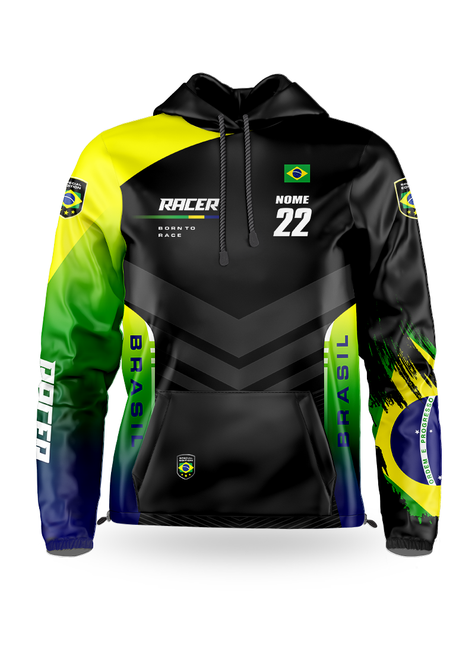 O agasalho é fabricado com tecido chimpa com peluciado interno, capuz com tecido peluciado interno microsoft, que garante o conforto e pro ajuste do capuz tem cordão e ponteira. Perfeito para dias mais frescos sem deixar de mostrar sua identidade de piloto. Ótimo para te acompanhar nos eventos off road. Com grafismos sublimados, o agasalho possibilita que a durabilidade de uso seja elevada, mesmo após o uso intenso e após várias lavagens.
