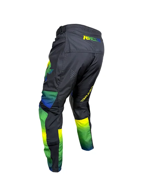 Há vários pontos estrategicos como joelho, panturilha, virilha com painés elásticos para garantir a flexibilidade da calça e ajudar na pilotagem.