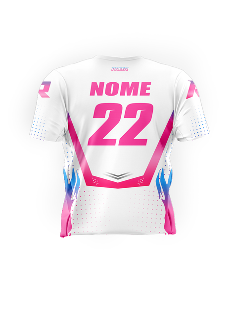 1 Camiseta personalizada com seu nome e número, sublimada, tecido dryfit, com gola redonda.