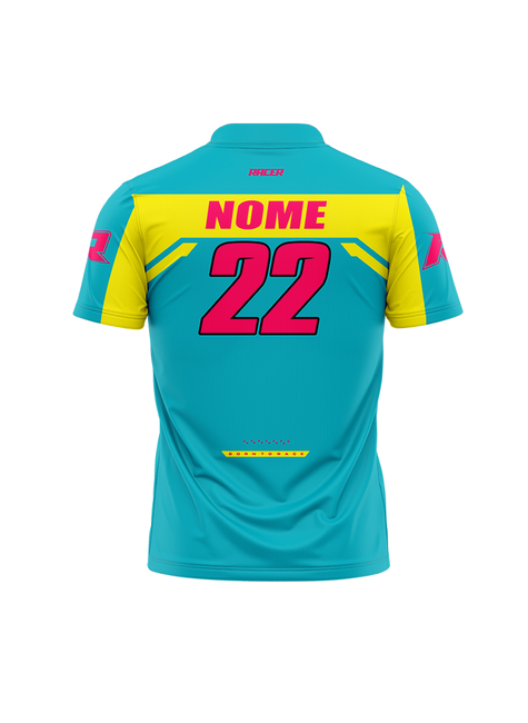 • 1 Camiseta Gola Polo personalizada com seu nome e número, sublimada, tecido dryfit.