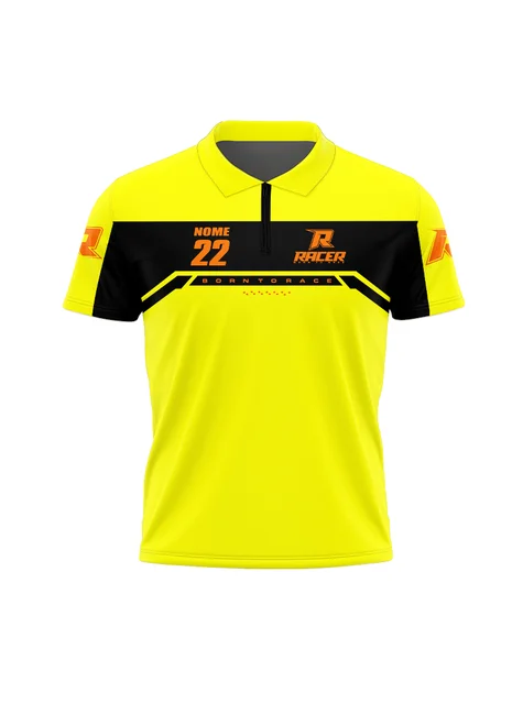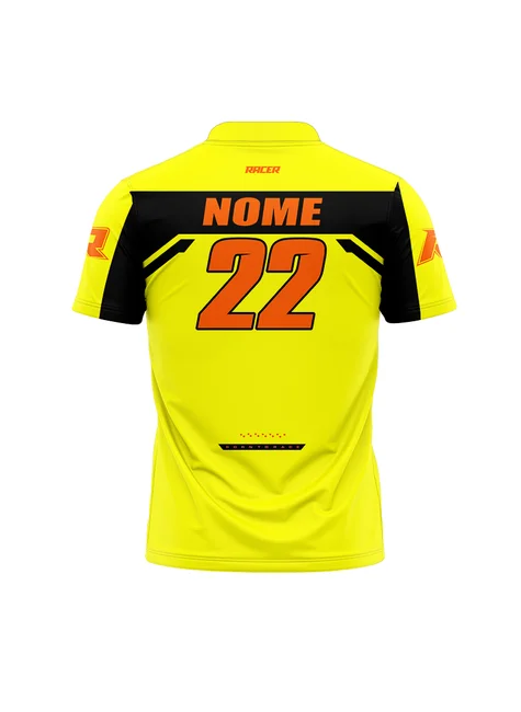 Camiseta Gola Polo 11E amarelo e laranja fluor