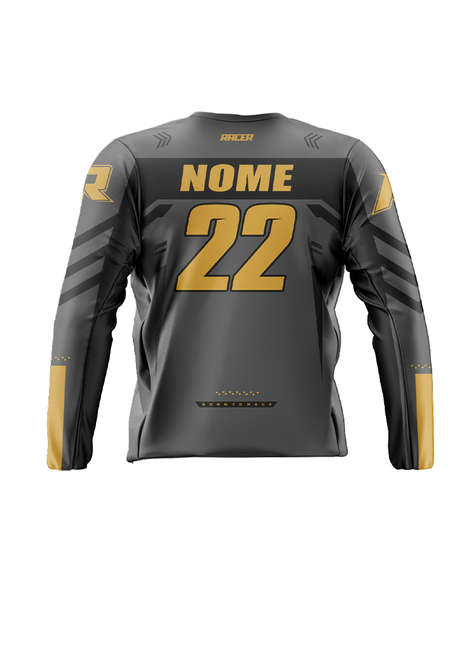 Camiseta Longa Racer 11A Cinza e Dourado