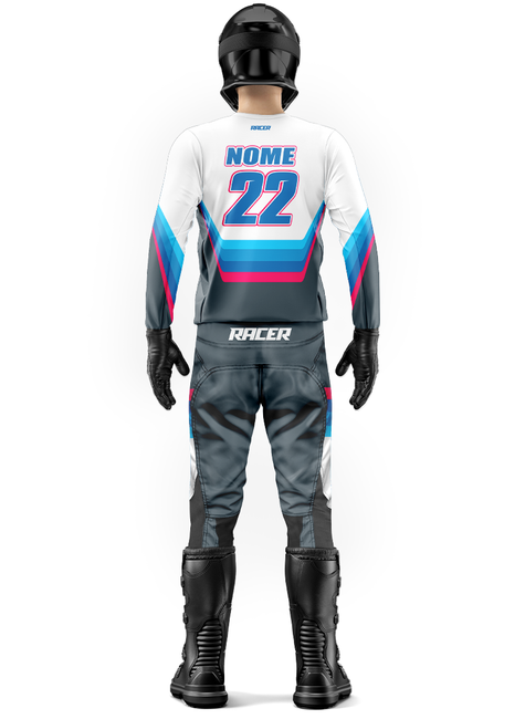 Acompanha nome e número personalizados pra ser reconhecido nas pistas e trilhas.