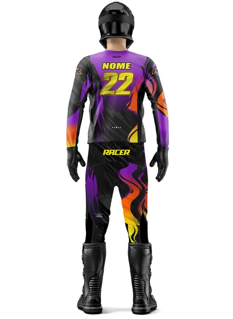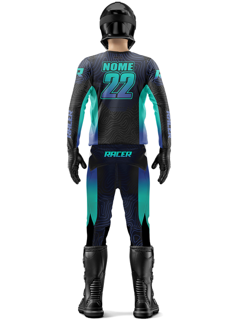 Acompanha nome e número personalizados pra ser reconhecido nas pistas e trilhas.