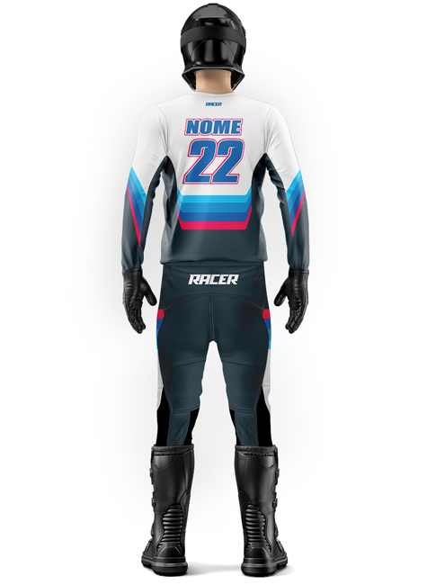 Acompanha nome e número personalizados pra ser reconhecido nas pistas e trilhas.