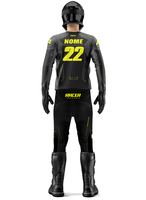 Acompanha nome e número personalizados pra ser reconhecido nas pistas e trilhas.