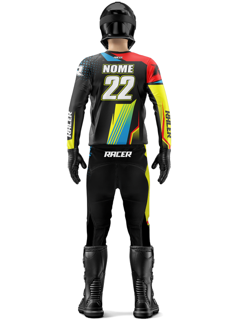 Acompanha nome e número personalizados pra ser reconhecido nas pistas e trilhas.