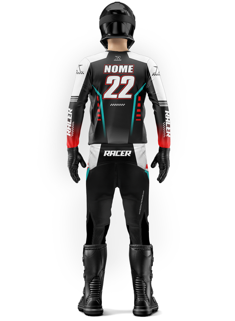 Acompanha nome e número personalizados pra ser reconhecido nas pistas e trilhas.