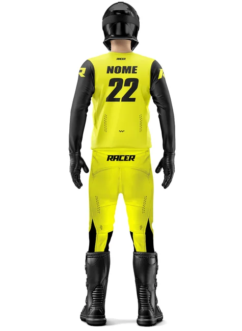 Acompanha nome e número personalizados pra ser reconhecido nas pistas e trilhas.