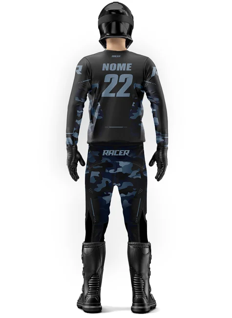 Acompanha nome e número personalizados pra ser reconhecido nas pistas e trilhas.