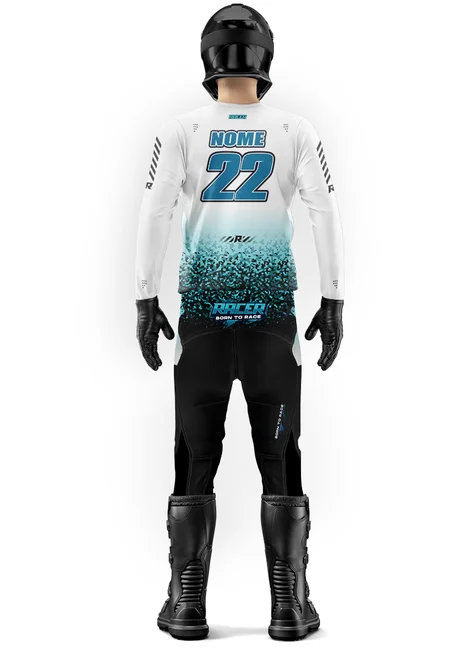 Acompanha nome e número personalizados pra ser reconhecido nas pistas e trilhas.
