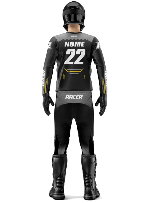 Acompanha nome e número personalizados pra ser reconhecido nas pistas e trilhas.