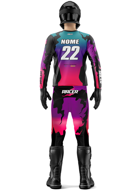 Acompanha nome e número personalizados pra ser reconhecido nas pistas e trilhas.