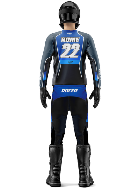 Acompanha nome e número personalizados pra ser reconhecido nas pistas e trilhas.