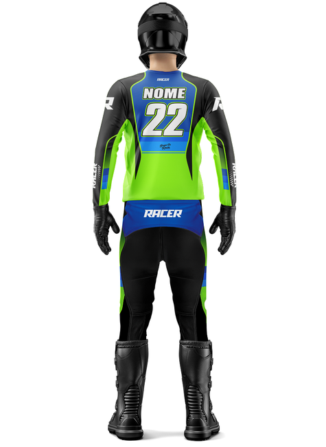 Acompanha nome e número personalizados pra ser reconhecido nas pistas e trilhas.