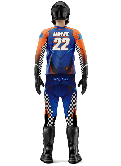 Acompanha nome e número personalizados pra ser reconhecido nas pistas e trilhas.