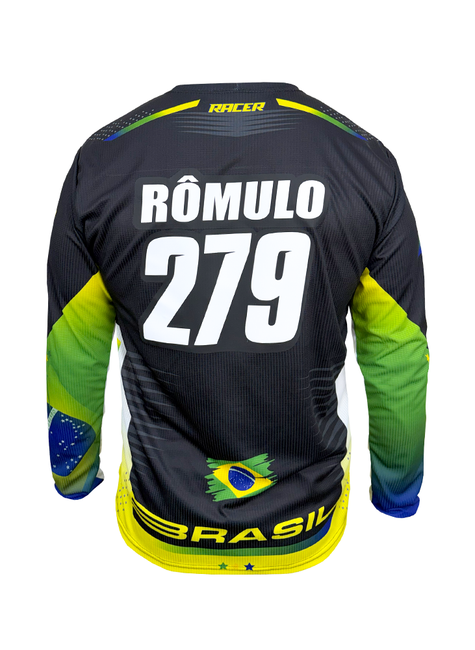 Acompanha nome e número estampado com filme de recorte pra ser reconhecido nas pistas e trilhas.