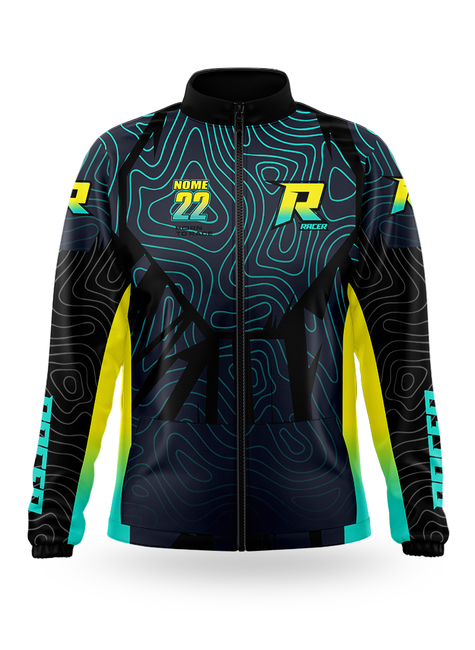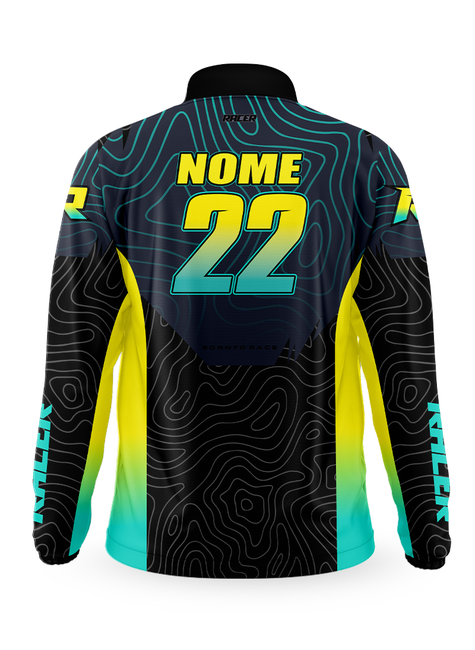 Acompanha nome e número personalizados pra ser reconhecido fora das pistas e trilhas.