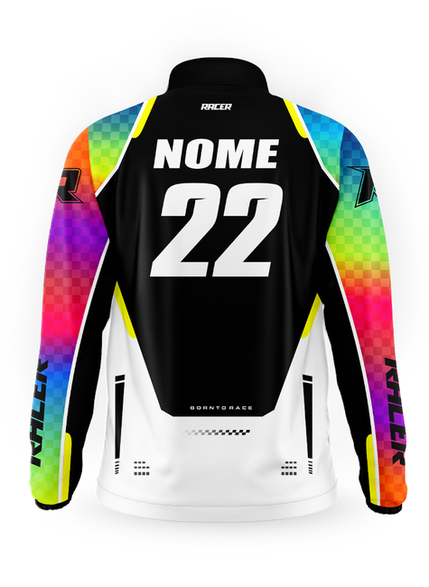Acompanha nome e número personalizados pra ser reconhecido fora das pistas e trilhas.