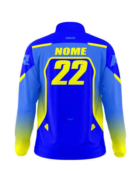 Acompanha nome e número personalizados pra ser reconhecido fora das pistas e trilhas.