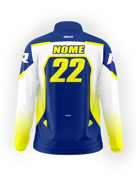Acompanha nome e número personalizados pra ser reconhecido fora das pistas e trilhas.