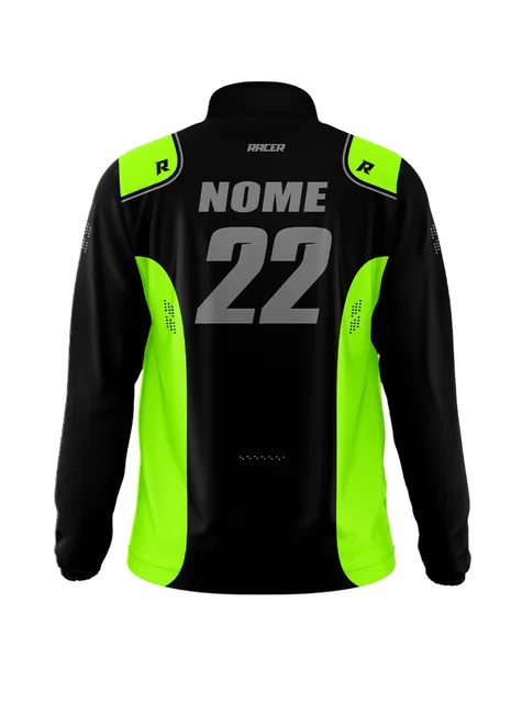 Acompanha nome e número personalizados pra ser reconhecido fora das pistas e trilhas.
