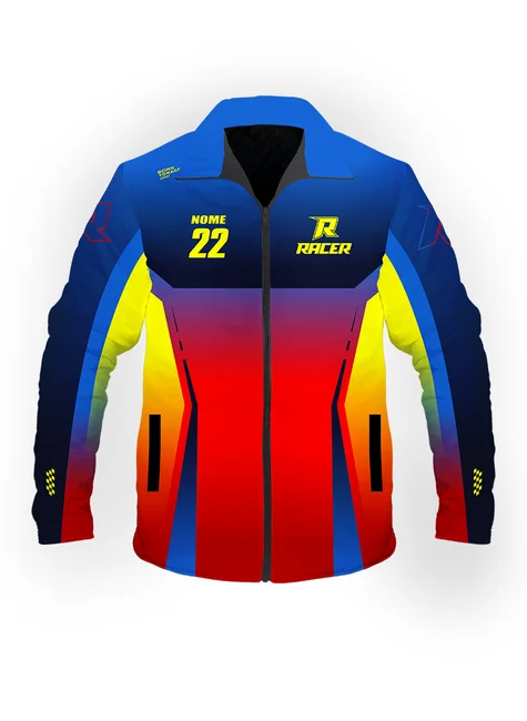 • 1 Jaqueta com seu nome e número, sublimada, repelente a água, com bolso interno e externo
