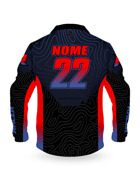 Acompanha nome e número personalizados pra ser reconhecido fora das pistas e trilhas.