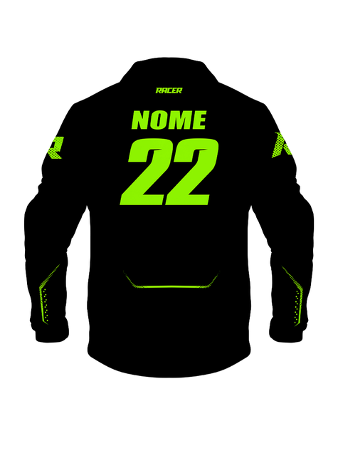 Acompanha nome e número personalizados pra ser reconhecido fora das pistas e trilhas.