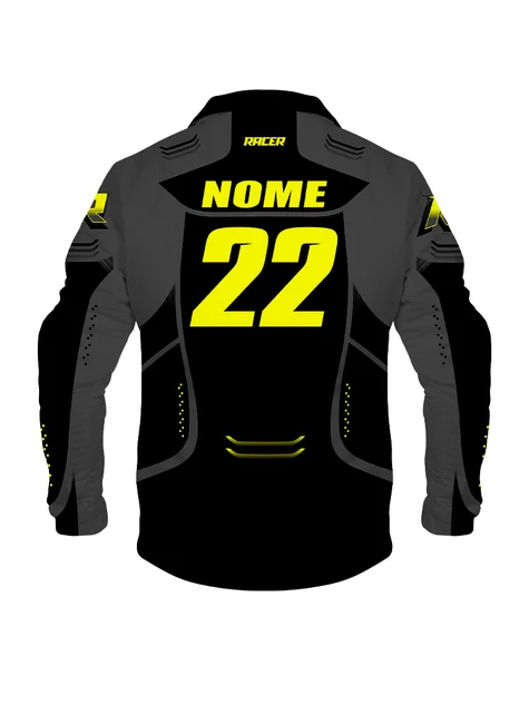 Acompanha nome e número personalizados pra ser reconhecido fora das pistas e trilhas.