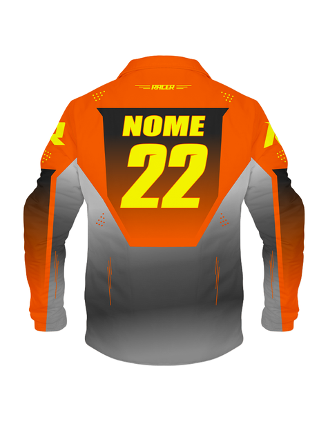 Acompanha nome e número personalizados pra ser reconhecido fora das pistas e trilhas.