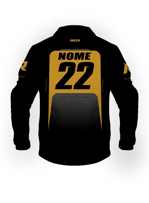 Acompanha nome e número personalizados pra ser reconhecido fora das pistas e trilhas.
