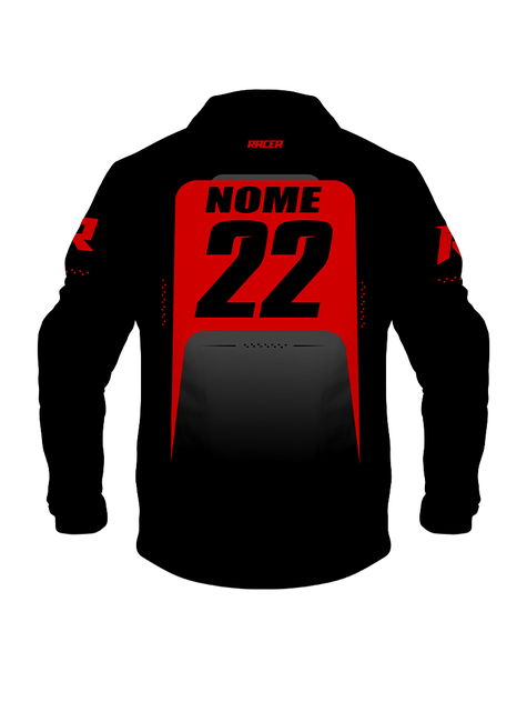 Acompanha nome e número personalizados pra ser reconhecido fora das pistas e trilhas.