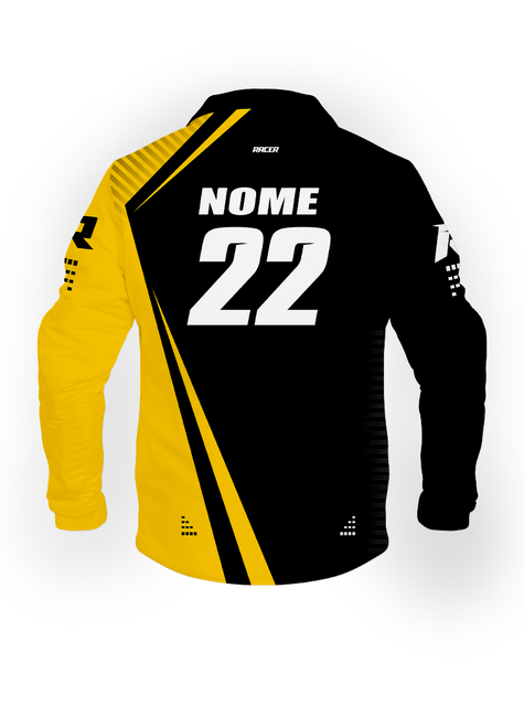 Acompanha nome e número personalizados pra ser reconhecido fora das pistas e trilhas.